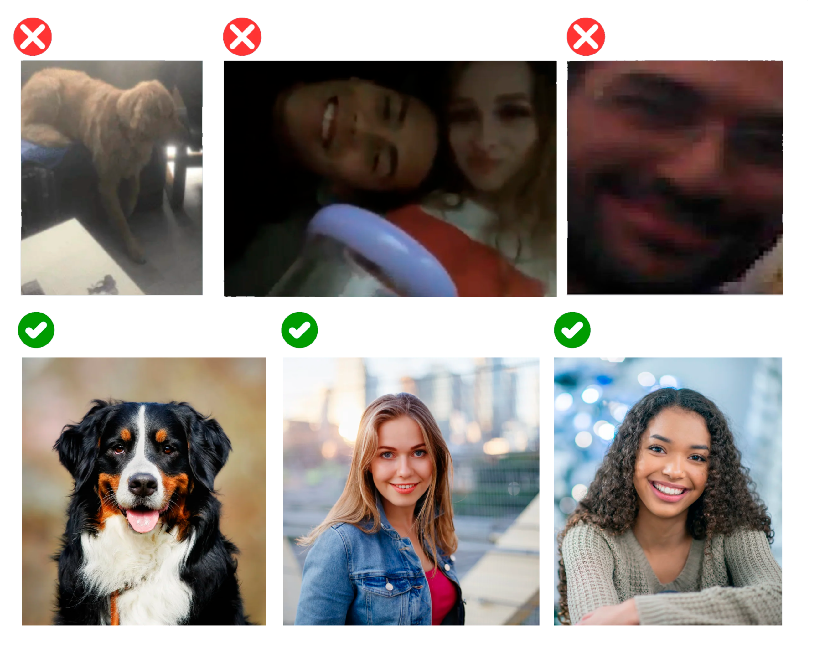No aceptamos imágenes en las que se hayan recortado partes como orejas, cabezas o patas.